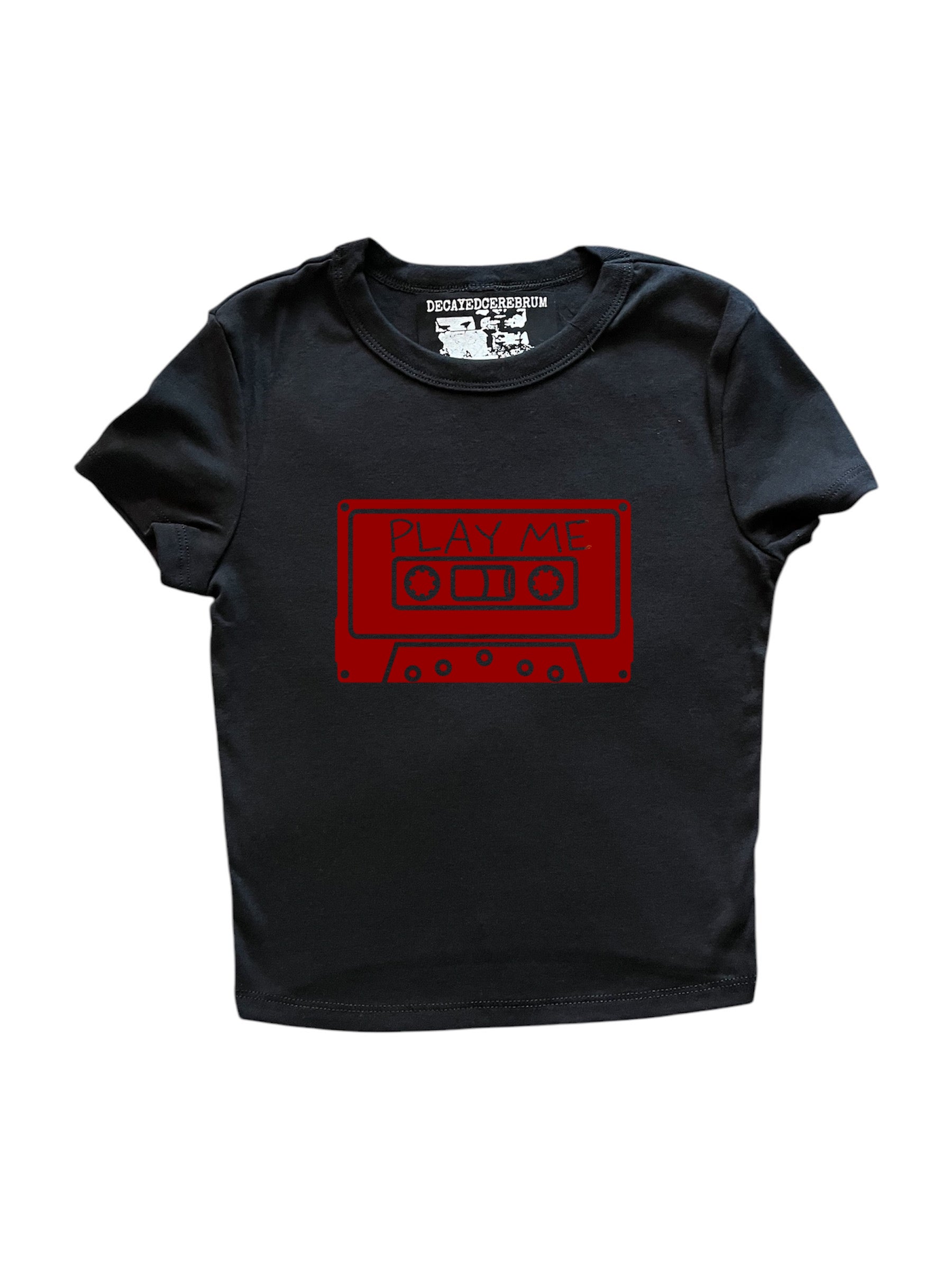 Play me red cassette tape cropped bany tee!